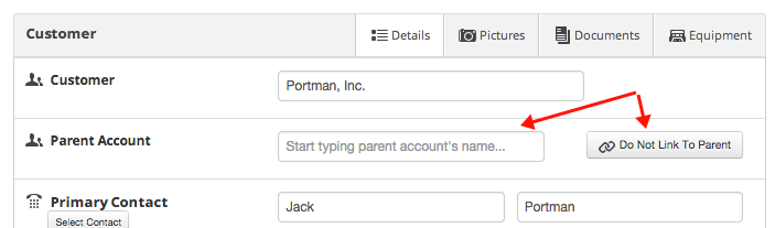 Added a "Link To Parent" account feature to Estimate and Job screens