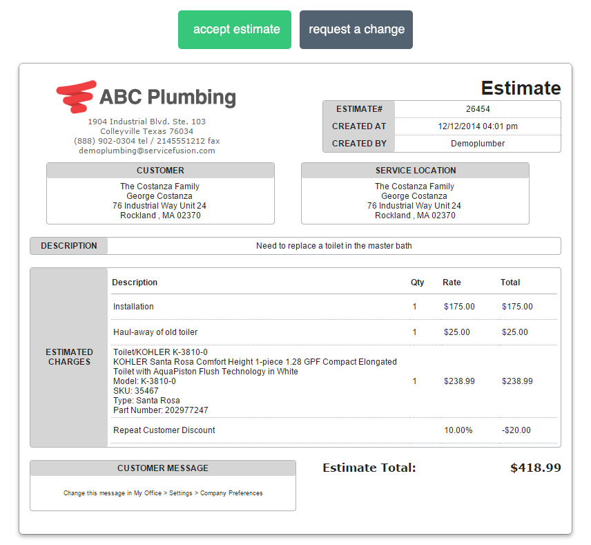 You can now setup customer service agreements for each customer and the details of the agreements will be displayed as you create jobs or estimates. Your service techs will be able to see the details of these agreements right inside the field worker app.
