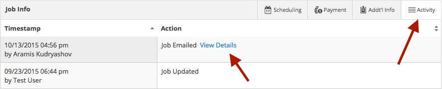 For emailed work orders/estimates, if you click on the Activity tab, you will see a link called View Details: