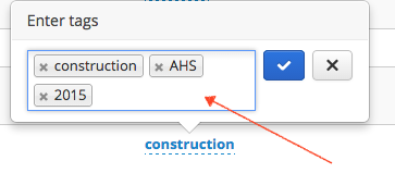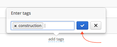Simply input text in the field and press enter. Now tag is crated. Click on the blue check button and you are done.