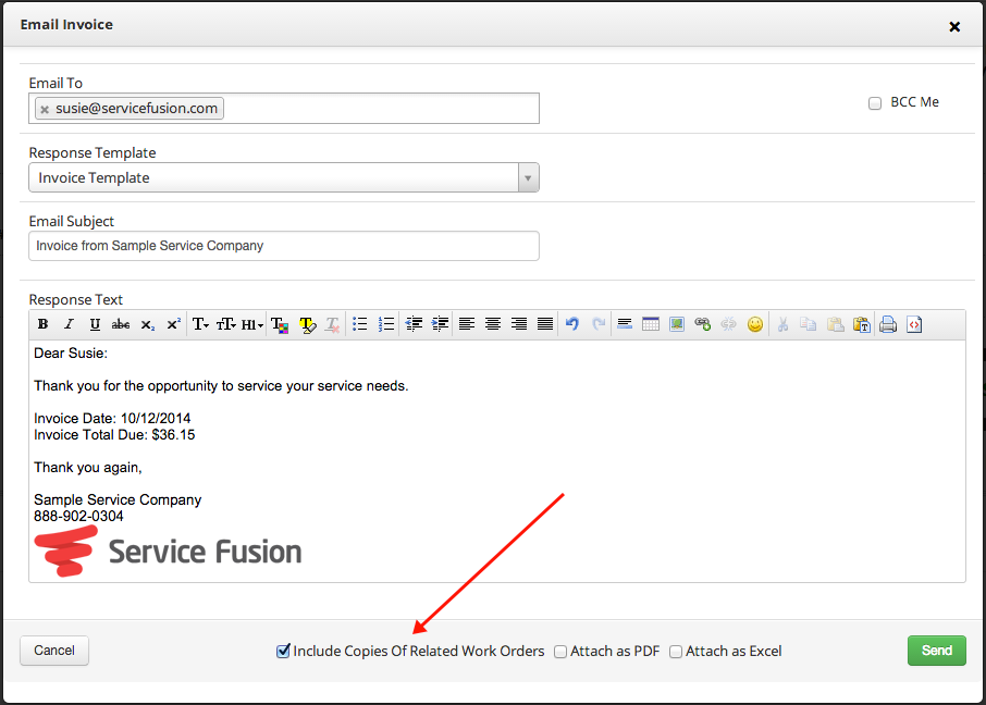 As part of this implementation, a preference was added to My Office > Settings > Outbound Email Preferences to automatically check this box for those who would like to always attach copies of work orders to invoices.