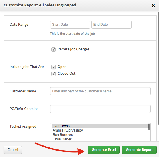 As before, when running a Sales Commission report, you had to run it with all products and all services. Now we have added an option to select just services or products. We added an option from the drop down menu called NONE.