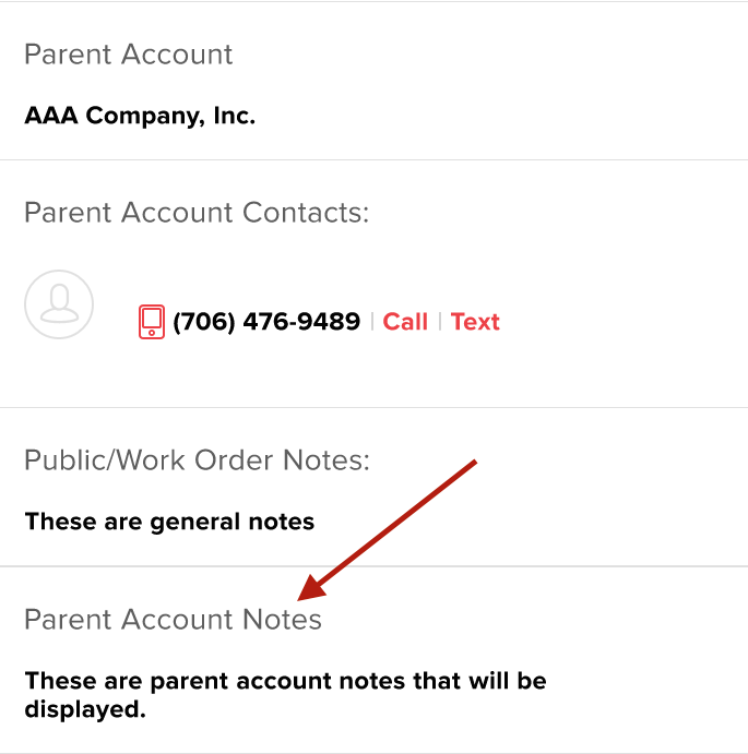 In the worker app when you look at the customer info page from either the job/estimate Info button or from the Customer List section, if a customer has a parent account and that parent account has notes, those notes now are displayed underneath the main account notes. It's the Public/Work Order notes from the customer's profile.