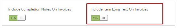 When enabled, Completion Notes will be added underneath the description of the job on printed and emailed invoices.