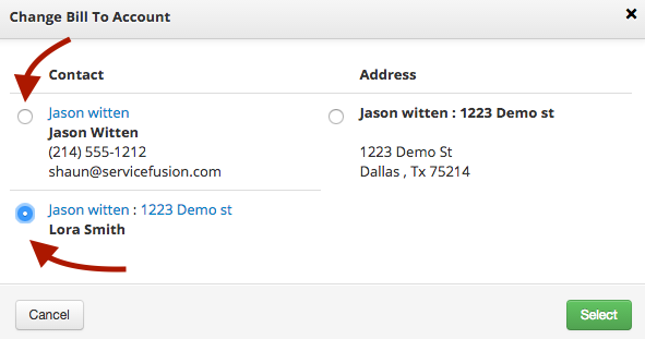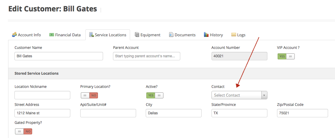 4. Added ability to select sub-account service location on invoices for jobs billed to parent accounts