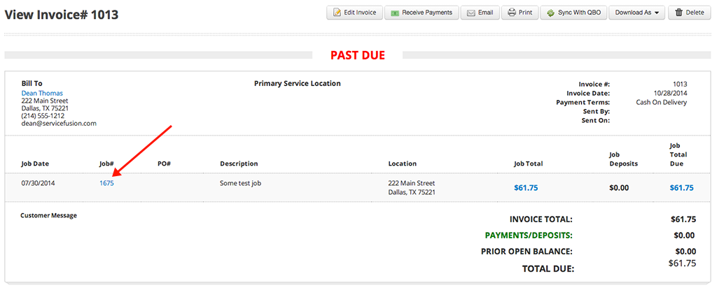 In Service Fusion you will see both the Service Fusion and the QuickBooks invoice numbers ion the invoice view screen.