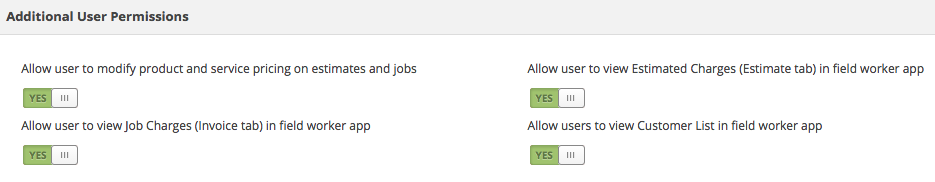 The first toggle if toggled to no, will not allow users to modify estimate/job description.