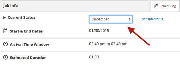 Now that the Site Visit is set the status of a job is going to switch to Dispatch, if it is in any other status. Same will happen in the Worker App. The assign tech(s) will be able to see it in My Work section of the app.
